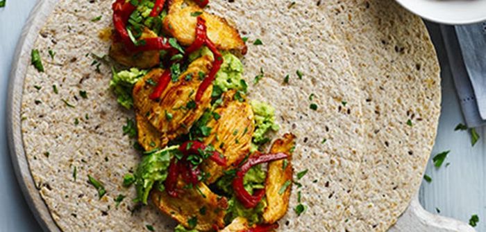 - Add the peppers to the pan to warm them up then add them to the wraps with the chicken.