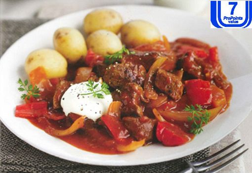 This goulash goes well with 100g (3 ½ oz) boiled new potatoes but just remember to add the extra 2 ProPoints values per serving.
