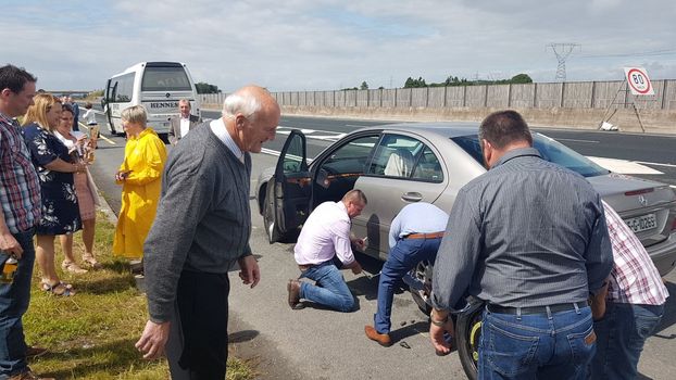An older couple, who were also heading to the Galway races, had a busted tyre, so being the lovely chaps that they were, pulled over and got out and helped them change their deflated tyre so they could all head on to a great day at the races.