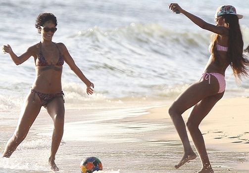 The 25 year-old beauty is currently in Barbados soaking up the sun with her pals on the beach and showed her talents extend beyond the musical environment. She was pictured playing a bit of ball on the sand, while also demonstrating her ability to multitask by holding onto her beer without spilling a drop. Impressive