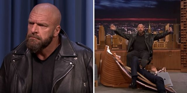 During the segment, Fallon has a silly little play on Triple H and Preparation H which didn’t go down to well. Take a look at this body-slam.