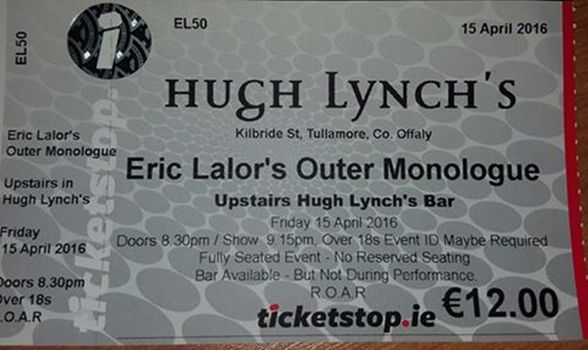 My show, Eric Lalor’s Outer Monologue was making it’s debut at Hugh Lynch’s in Tullamore.