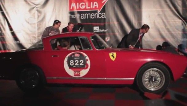 This is exactly what happened to this clumsy Ferrari driver who was able to give a physics lesson and make fools out of the five starting announcers all at the same time. Alain de Cadenet probably thought he was the bees-knees when he pulled up on stage in his 1957 Ferrari 250 GT at the Mille Miglia North America Tribute last month.