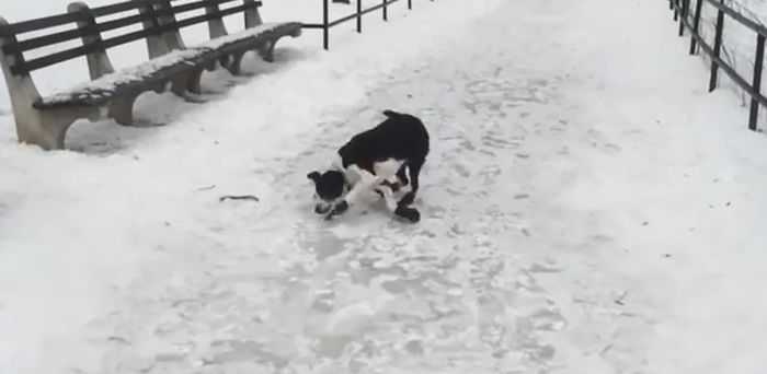 That’s why we got an extra kick out of this guy’s fall, occurring as it did only seconds after his dog has suffered the same fate and especially because he almost seemed to be willing his dog to fall in the first place.