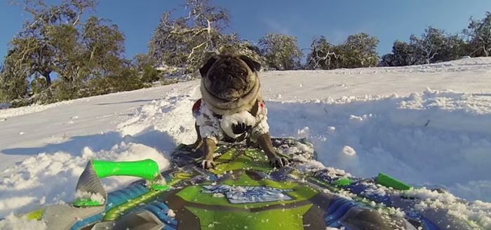 Brandy and his owner Jonny Dorman went snowboarding in Southern California, and the result was fantastic.