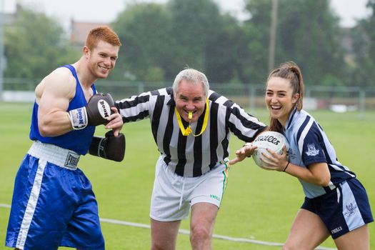 (Pictured above: Boxer, Steve Collins Jr., Senior football player Ciara Ruddy and former rugby player, and rugby analyst and commentator, Brent Pope)