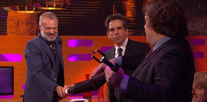 Instead of using his hand, the host decided to enlist the help of Stiller and his enormous selfie stick (steady on). Hilarity ensured, watch the clip here.