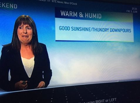 On tonight’s weather broadcast it seems that Evelyn Cusack had a bit of a shocker, but we know she’s not responsible for possible thundery downpours.