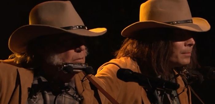 He was at it again last night when he was joined by the great Neil Young for a performance of ‘Old Man’, one of Young’s finest and most recognised songs from his substantial back catalogue.
