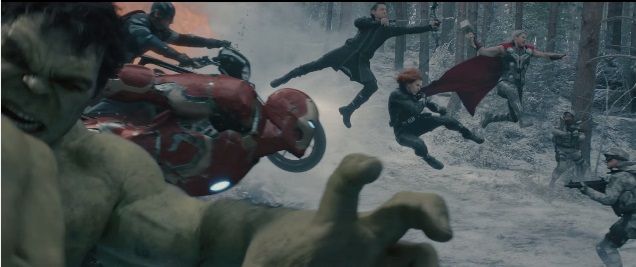 We finally get a look at Elizabeth Olsen’s Scarlet Witch and Aaron Taylor-Johnson’s Quicksilver laying the smackethdown on some Avenger ass and a rather brilliant scrap between The Hulk and Iron Man.