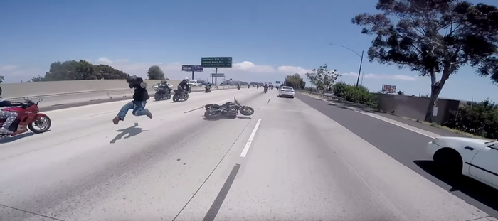 This guy was biking on a motorway when he decided to do a wheelie, which probably would have been fine if it had not been for the bike switching into neutral and throwing him off.