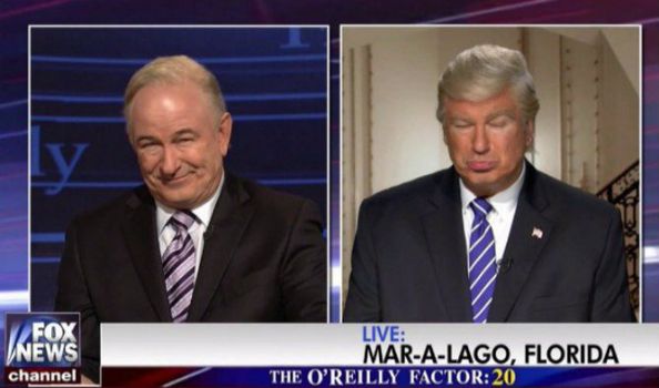 Instead of just having him play (to perfection) the Commander-in-Chief of the United States, they had him double down and portray the Fox News anchor Bill O’Reilly who was recently part of a massive $13 million out-of-court settlement regarding sexual harassment lawsuits brought against him.
