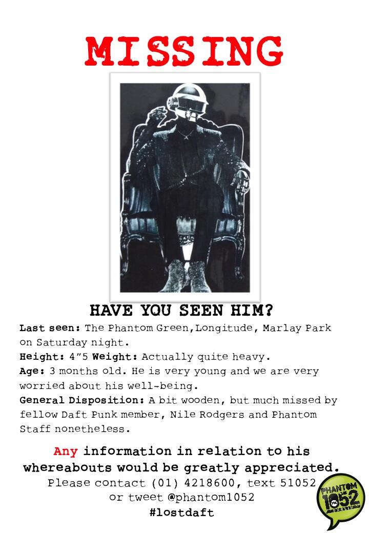 Hopefully the good folk over at Phantom will ‘Get Lucky’ and their missing member will be returned safe and sound.
