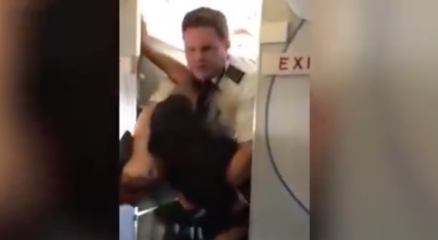 WATCH: ‘Don’t Put Your Hands on My Flight Attendant!’ – Pilot tackles drunk passenger on plane