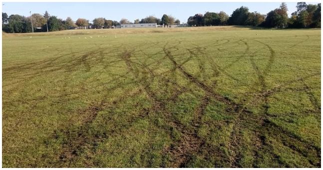 It also posted images of the damage, in which extensive tyre marks can be seen upon the pitches.