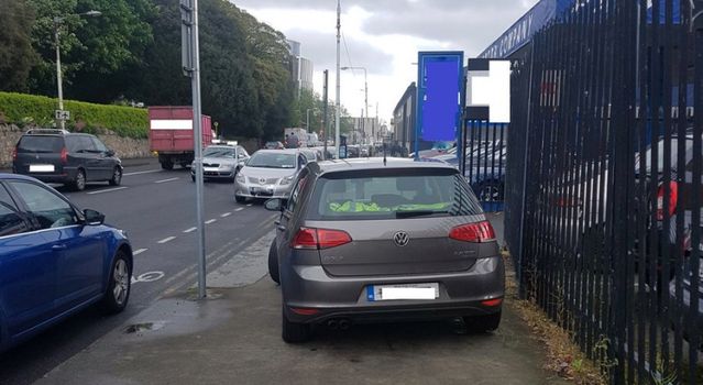 On Friday evening, the Gardaí posted a picture of a Volkswagen Golf parked on the footpath on Conyngham Road, Dublin, completely blocking the footpath for pedestrians.