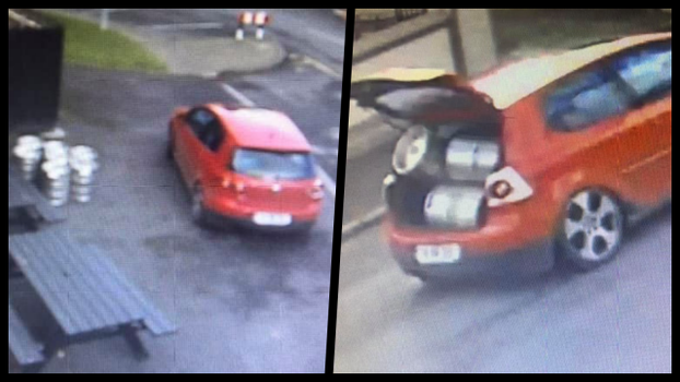 “A small red car believed to be a VW Golf pulled up and stole five kegs that had just been delivered to us.