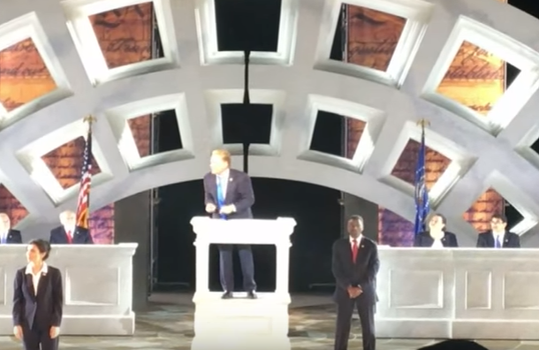 The play is sponsored by some major corporations including the New York Times, American Express and Bank of America who all as of Sunday evening, had not made a statement regarding the play.