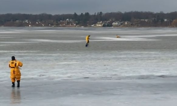 Firefighters on Lake Michigan risk their lives to save a beloved family pet who had fallen through the ice, and we’re happy to report a happy ending.