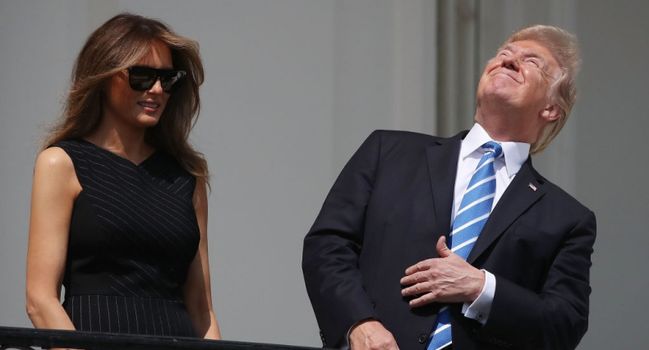 But of course, Donald Trump is never a man to do things normally and abandoned his protective glasses and sneaked a peek up at the eclipse, risking damage to his eyes.