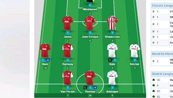 Neil Kelly stretched his lead in the J-League as he notched up an impressive 82 points, helped by having Rooney as captain and the timely transfer in of Nani. Conor Sheehy’s A Great Bunch’a Lads total of 79 was enough to jump him back into second place, putting him on 932, just three ahead of Hee Haw United and James Ward.