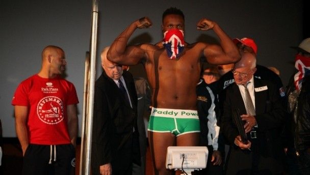The tense atmosphere at today’s weigh-in was temporarily lightened when the 242lb Zimbabwean muscleman proudly displayed his green Paddy Power lucky underpants while on the scales.