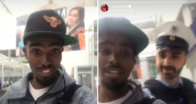 In the clip, an official at the airport in Germany tells Farah to”go to the gate.”