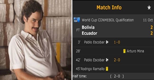 Pablo Escobar scored twice for Bolivia last night and Narcos fans just couldn’t help themselves