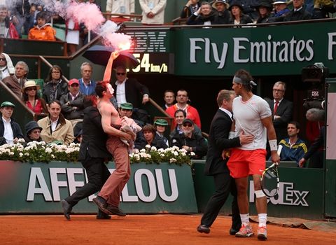 Trouble flared up in bizarre circumstances at the French Open Final today when a protestor interrupted play at Roland Garros today.
