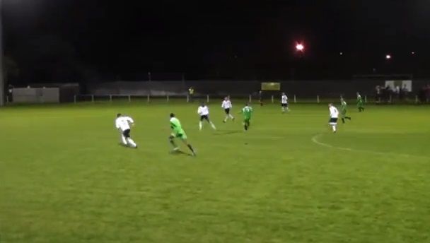 A long hopeful ball out of defence happens to fall at striker Stephen Nolan’s feet, who takes one touch and lamps it into the net from 35 yards plus.