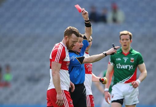Doherty was sent for an early bath during the first half of the National League semi-final after barrelling into the Mayo midfielder – who’s not an easy man to knock – on the touchline just after O’Shea had kicked the ball down the line.