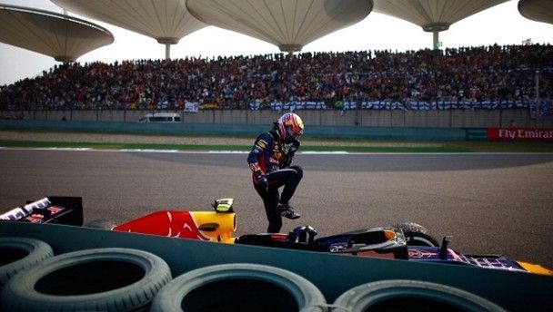 The wheels really fell off Mark Webber’s challenge to win the Chinese Grand Prix in Shanghai earlier today, literally.