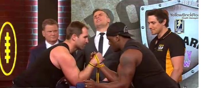 Video: Rugby players breaks arm on live TV in this NSFW arm-wrestling challenge
