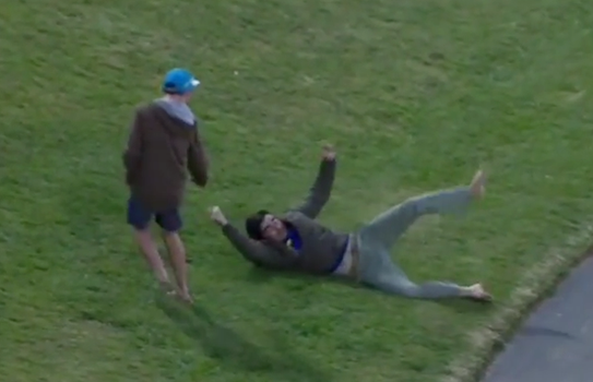 He showed some cat-like reflexes to recover from a slip on the hill and still get his hand to the ball to pull off a stunning catch. We’re pretty sure the catch would have been much more comfortable if he hadn’t been going all commando with his feet but it just added to the drama.