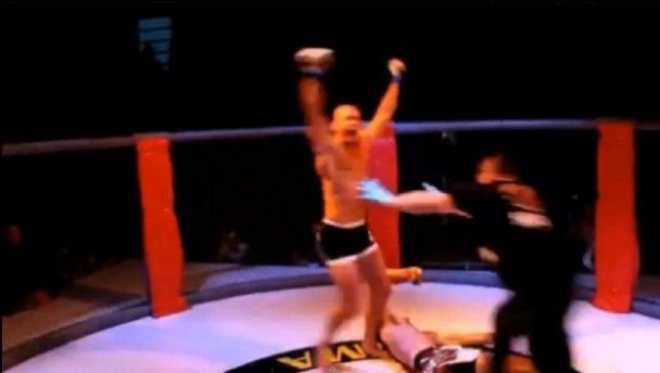 This video uploaded yesterday shows a pretty an amazingly quick mixed martial arts knockout and an even more intense celebration from the victorious fighter.
