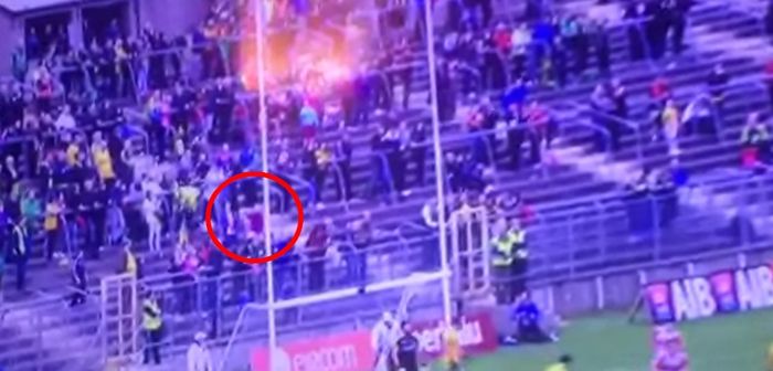 Unless there are nets in place behind the goal, however, there’s also a chance that you’ll be struck by the ball once it flies over the bar and one poor fan in Clones found that out to their cost when Benny Heron struck a point for Derry against Donegal on Saturday.