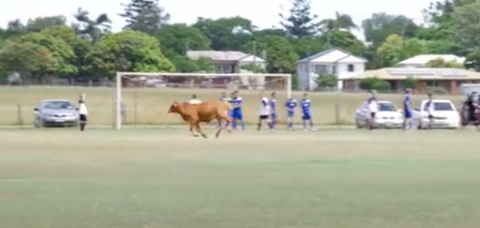 ABC News reported this incident from a football match in Maryborough in Queensland, when a bull ran onto the pitch during a junior game.