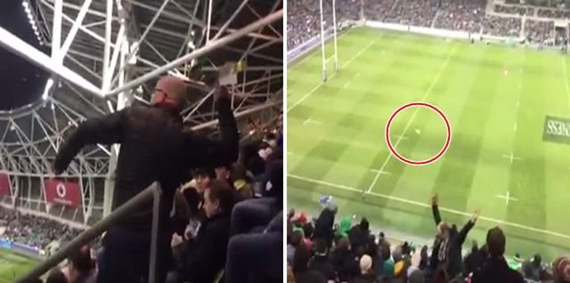 Take a look as one supporter manages to through a paper airplane from stands of the Aviva that make sits way onto the pitch.