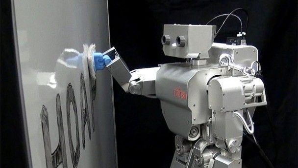 A team of fate-tempting Italian and Japanese researchers have taught Fujitsu’s HOAP-2 robot the menial and somewhat demeaning task of cleaning a whiteboard after discovering a breakthrough in the robot which was first released in 2003.