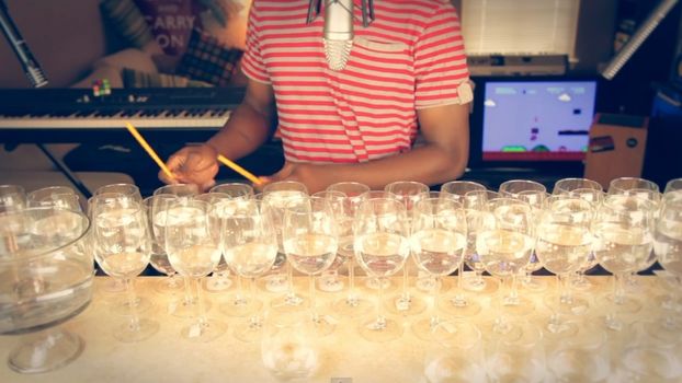 That was the case for kids all over the globe, and this rather excellent version comes courtesy of YouTube’s Dan Newbie who played it using 48 wine glasses, two pencils and a frying pan. Absolutely brilliant.