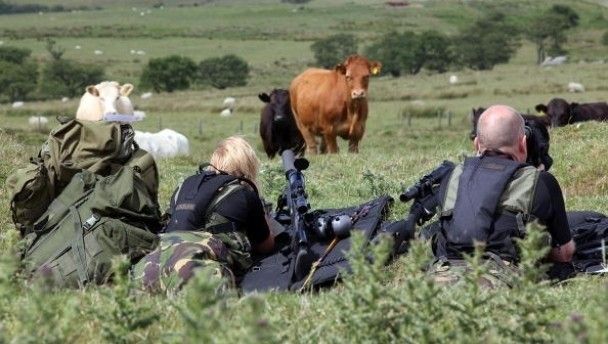 Police snipers overlook the hills and moors near the village of Rothbury as the search for armed fugitive Rauol Moat goes on in the north-east of the country on 7 July, 2010 in Rothbury, England. Police continue to search the village for the armed killer who has been on the run for allegedly shooting three people, one fatally.