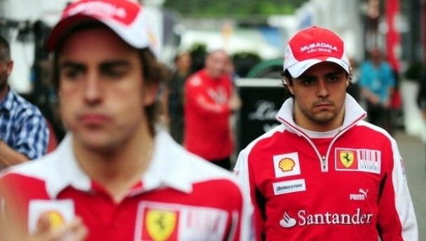 Formula One Ferrari team-mates Fernando Alonso and Felipe Massa cut forlorn figures after their controversial finish at the German Grand Prix in Hockenheim Sunday. Massa squandered his lead to allow team-mate Alonso to win the race, after he recieved coded headset orders from Ferrari race engineer Rob Smedley, who manipulated the race finish to protect Alonso’s standing in the F1 rankings. Ferrari have been fined $100,000 for their actions, though many are calling for the team to be banned for one or more races as a more fitting punishment.