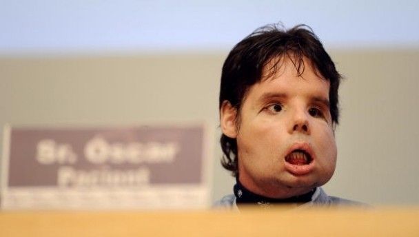 Oscar had been horribly disfigured in a shooting accident five years ago, and had difficulty breathing or speaking properly. After two years of planning, 30 doctors performed a 24 hour operation on the brave recipient, which included complete facial skin and muscles, eyelids, nose, upper jaw, cheekbones and teeth.