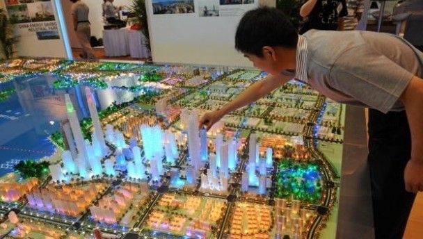 An exhibitor adjusts a scale model of China’s Suchou industrial park, exhibited at the World Cities Summit Expo in Singapore on June 28, 2010. The World Cities Summit (WCS) Expo is set to showcase the latest and most innovative solutions for livable cities of the future, and has attracted around 50 participating companies and agencies. It is expected 3,000 trade visitors will attend from June 29 to July 1.