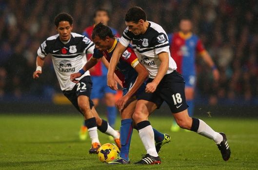 History at Selhurst Park as Jags becomes the first Everton captain to wear pink boots #efccpfc — Everton (@Everton) November 9, 2013