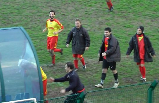 After scoring an absolutely woeful goal in an Italian amateur foota-ball match between Pontilcelli and Riolo Terme, a stocky goal-scoring striker celebrated in brilliantly bizarre fashion by lumbering towards the pitch dugouts and sticking his head right through the glass.