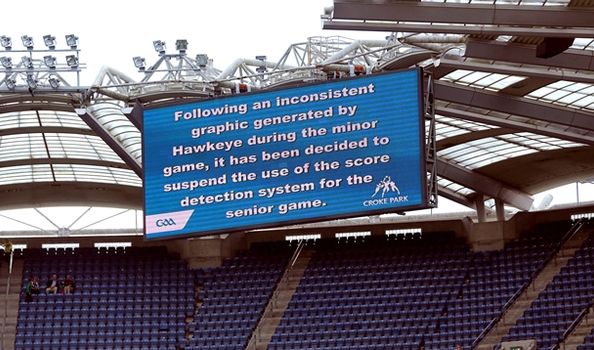 Hawk-Eye managing director Steve Carter met with GAA officials last night and said that the system was fully reliable and that the mistake was the result of the system being set-up for football, which created “a small overlap” with the diameter of a football instead of a sliotar.