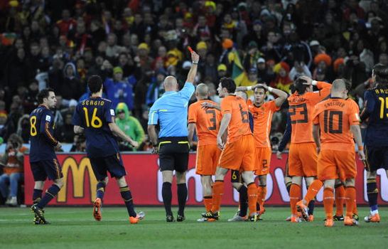 Last time out there were 253 yellows and 17 reds dished out by the men in black (or yellow, or pink or whatever it was) and we expect a similarly high card count in 2014. The Dutch ran away with this last time out, even without a red being issued to Nigel de Jong for karate kicking Xabi Alonso in the final.