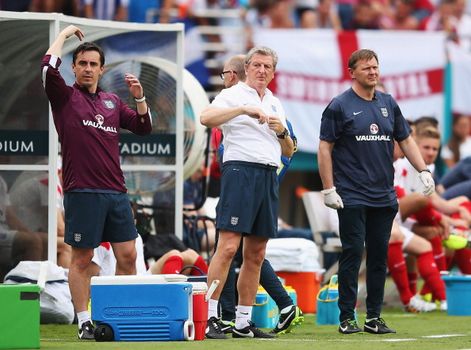 One of the members of the England staff, physio Gary Lewin, has come out of the celebration pretty badly as you can see…