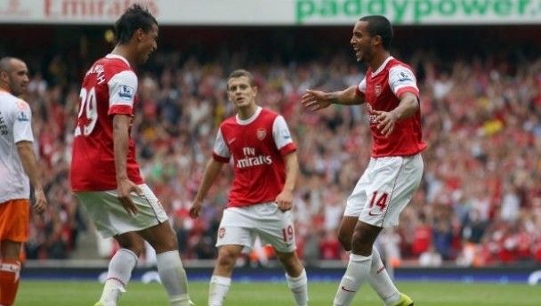 Theo Walcott grabbed a hat-trick for the Gunners, with Andrei Arshavin, Abou Diaby and Marouane Chamakh also getting on the scoresheet.
